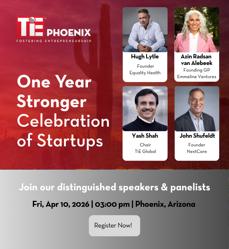 Learn about the different programs, courses, and support offered by TiE phoenix. Whether you’re starting at square one, your pitch has been perfected, or you’re ready to focus on capital, TiE has a program and resources for every stage of the startup lifecycle. TiE phoenix is here to empower you!
